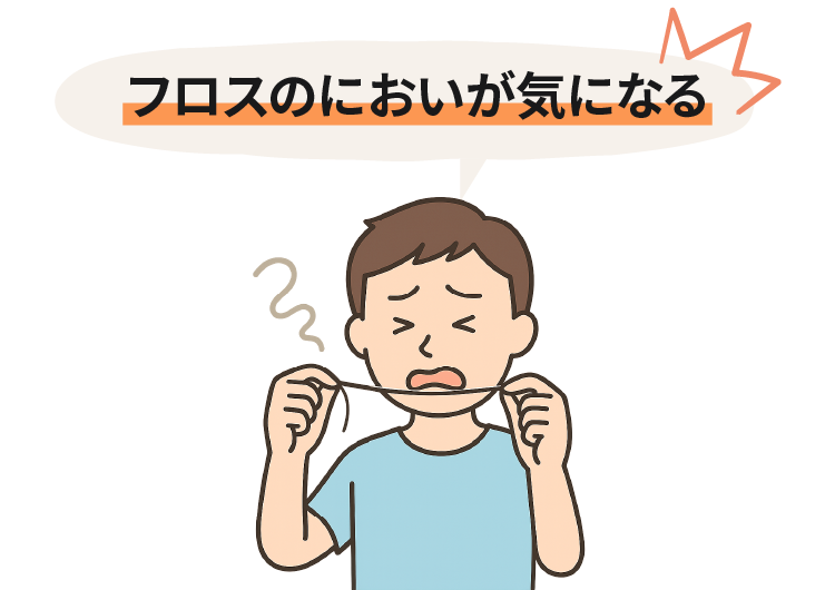 歯磨きだけでは、歯と歯の間の食べかすや歯垢を落としきることは出来ません。 残っている食べかすに細菌が住み着き、強いにおいを放つようになります。 その汚れをフロスで取り除くため、においが付着します。